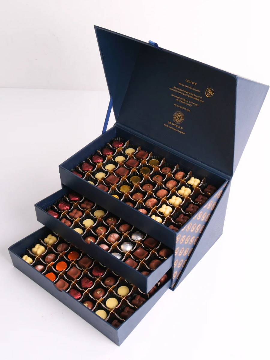 Three Layers of guilt-free Chocolate Pieces in Assorted Flavors: