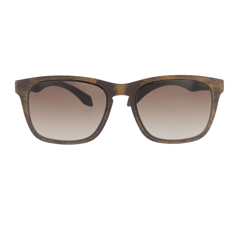 Unisex sport sunglasses with a brown wood effect frame with a brown mirrored lenses.