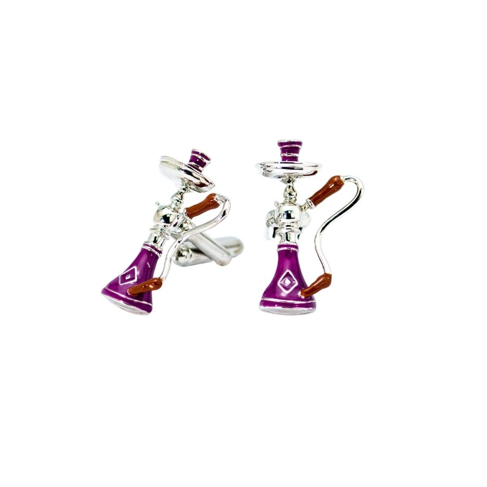 Funky Arab cufflinks in the shape of a shisha pipe, in purple enamel. Great gift for shisha enthusiasts.