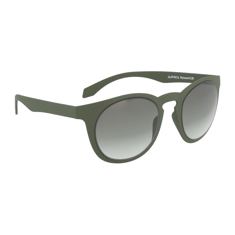 Unisex fashion sunglasses with military green frame and smoke gradient lenses polarized.