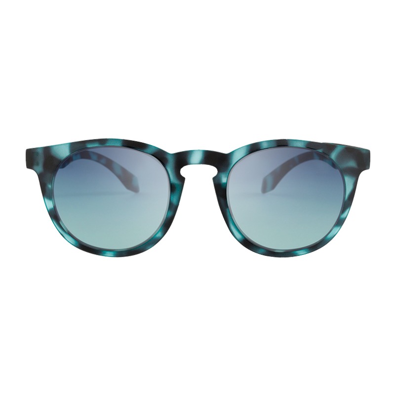 Unisex fashion sunglasses with light blue camo frame and blue gradient lenses.