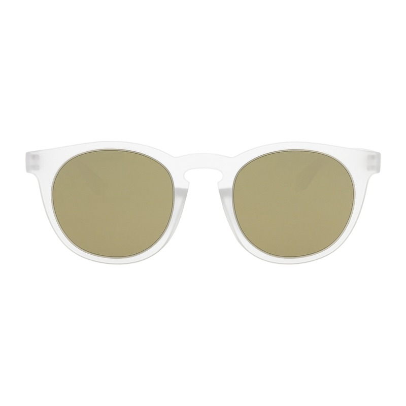 Unisex fashion sunglasses with transparent frame and green lenses.