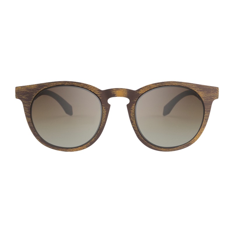 Unisex fashion sunglasses with a brown wood effect frame with brown mirrored lenses.