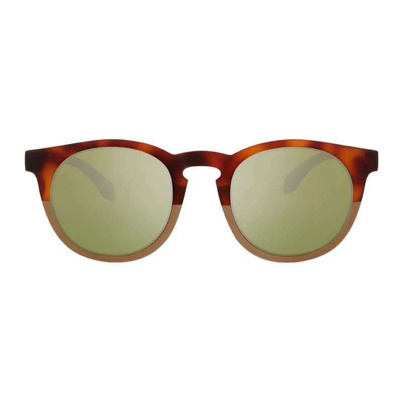 Unisex fashion sunglasses with havana/gold frame and green mirrored lenses.