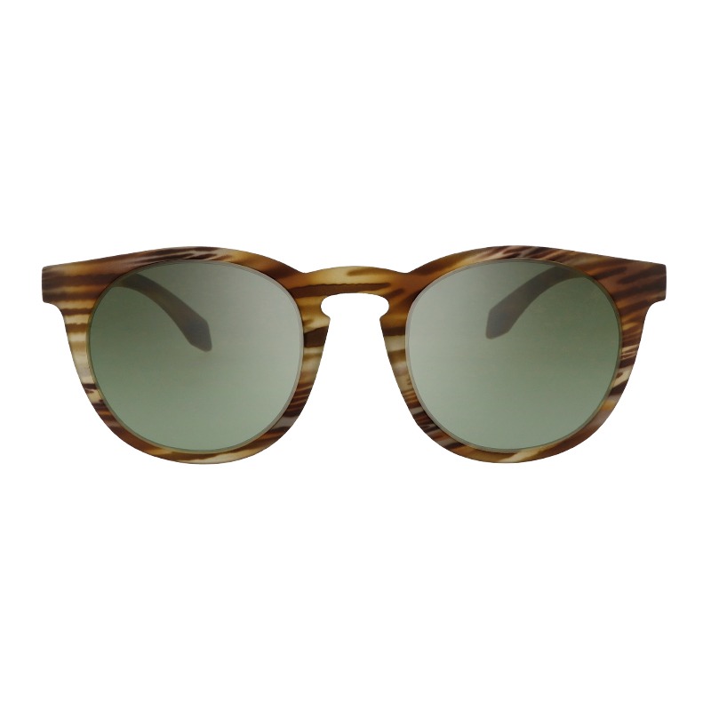 Unisex fashion sunglasses with brown zebra frame and green lenses.